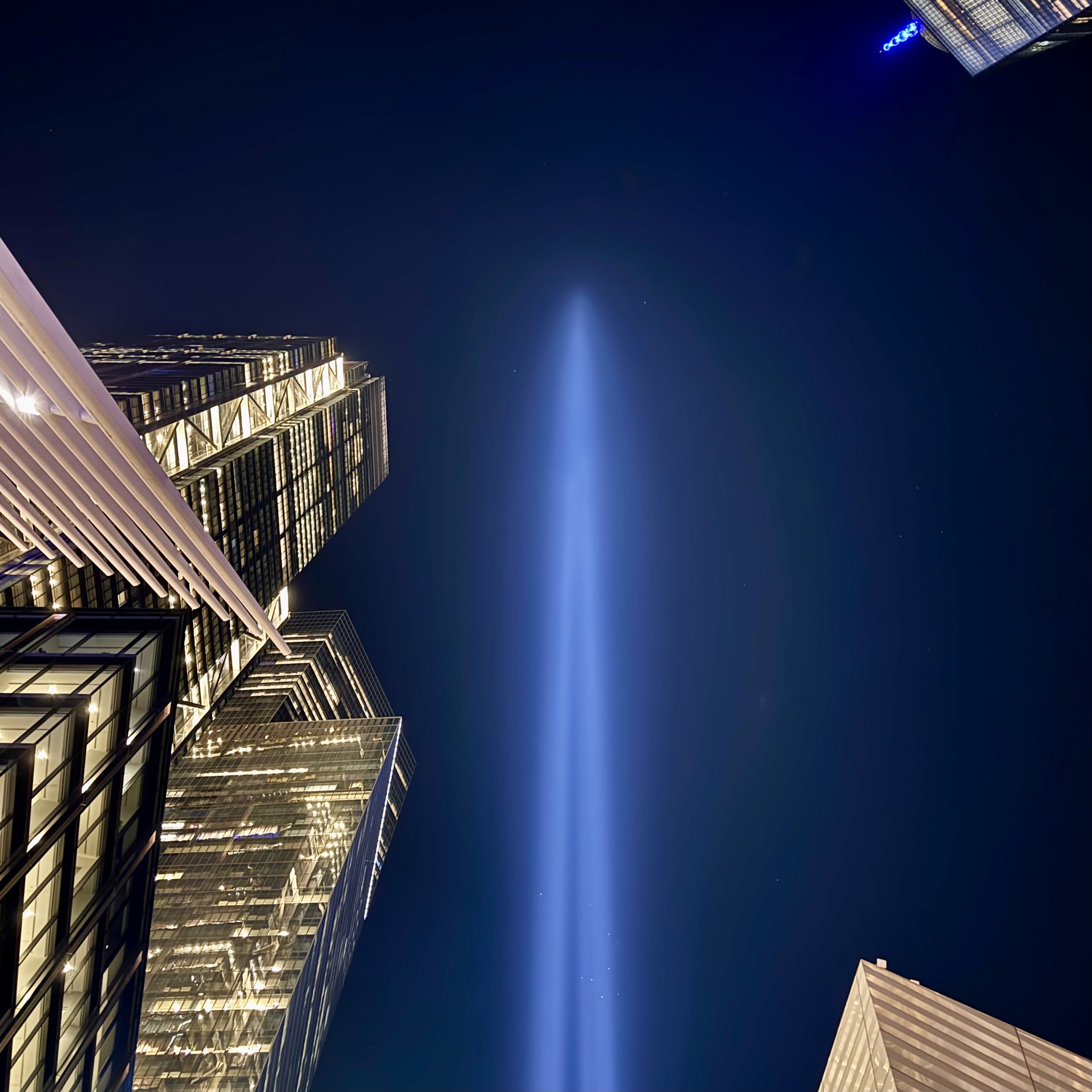 Tribute in Light, 9.11.25, in Lower Manhattan. As we continue to ask "Why, God, why?" may we also pledge to "never forget" and ask this question daily: "how can we serve?"