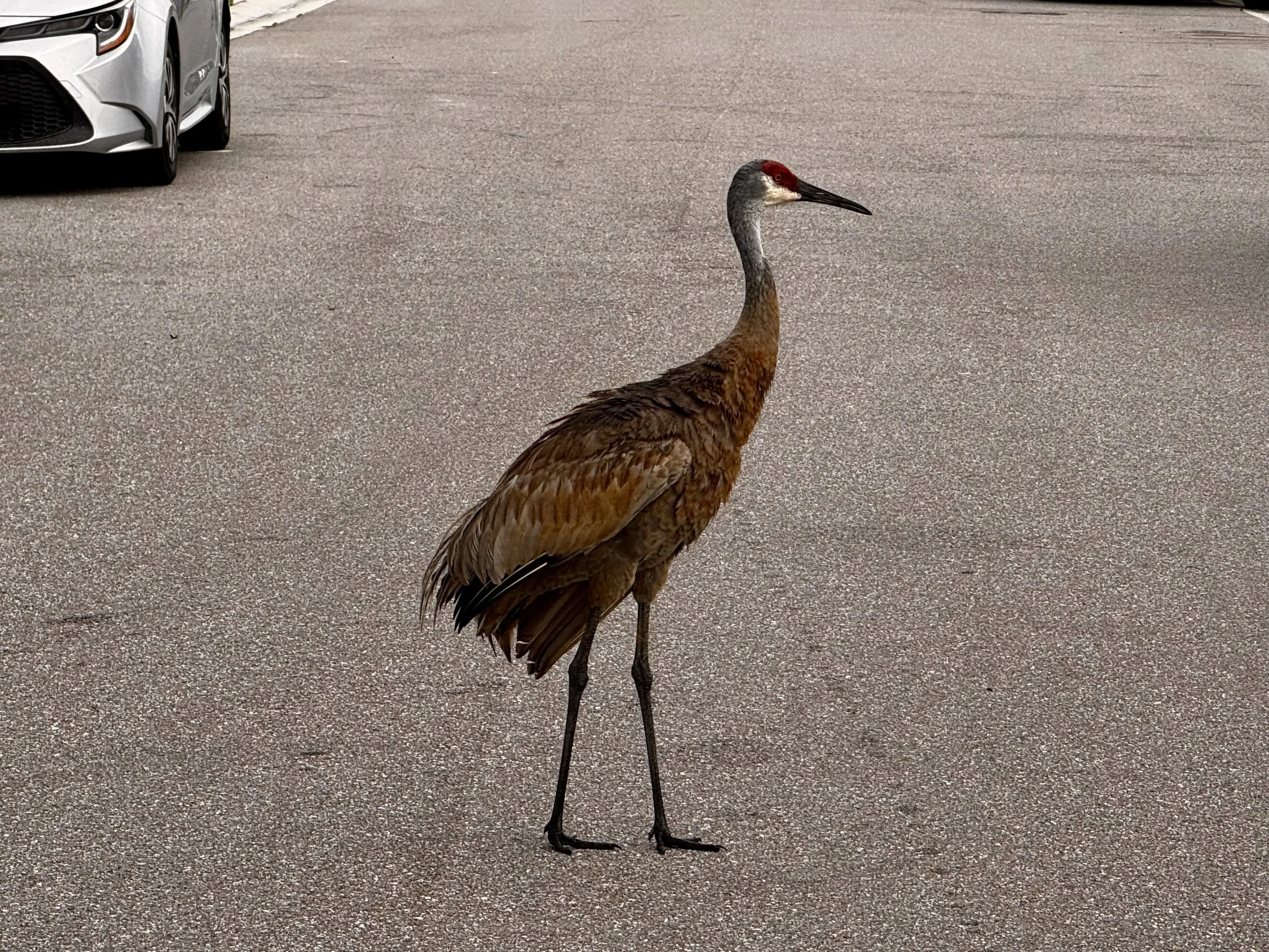 Q: why did the Sand Hill crane cross the road? A: I have no idea why but as Mel Robbins would say "let them." As long as they are not harming anyone, they are free to do whatever their innate nature wants them to.